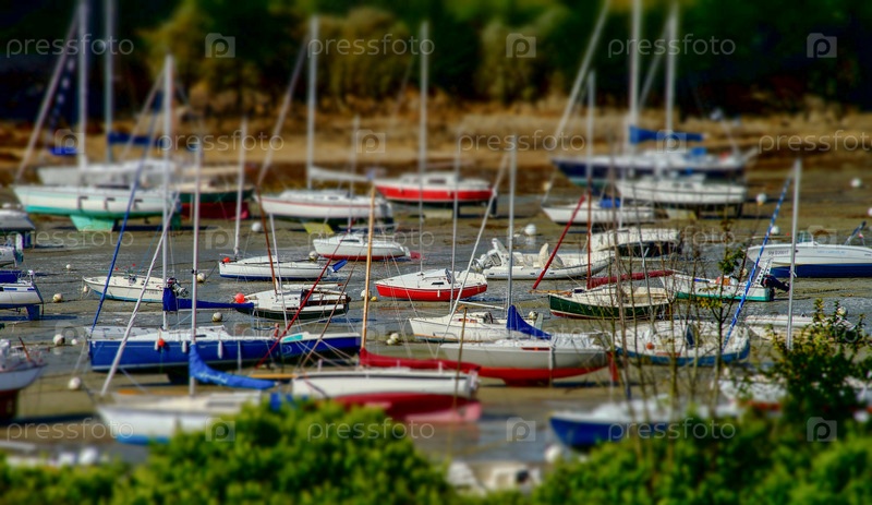 Маленькие лодки и яхты в порту Сент-Мало, Бретань