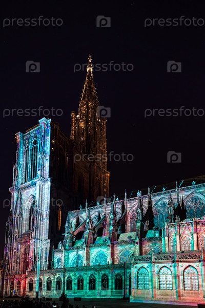 Подсветка собора Нотр-Дам в Страсбурге