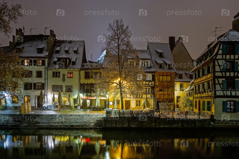 Старый квартал Страсбурга ночью