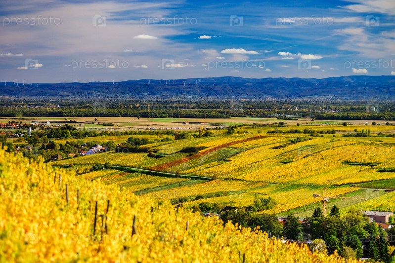 Желтые и оранжевые виноградники в деревне Андлау, Эльзас, Франция