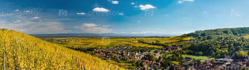 Желтые и оранжевые виноградники деревни Андлау, Эльзас, Франция