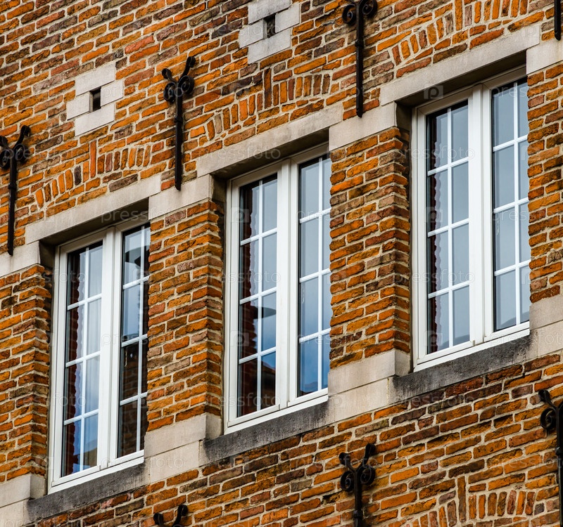 Старые, но отремонтированные окна в исторической части Брюсселя