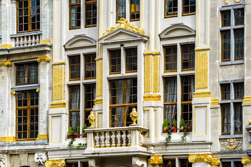 Старые, но отремонтированные окна в исторической части Брюсселя