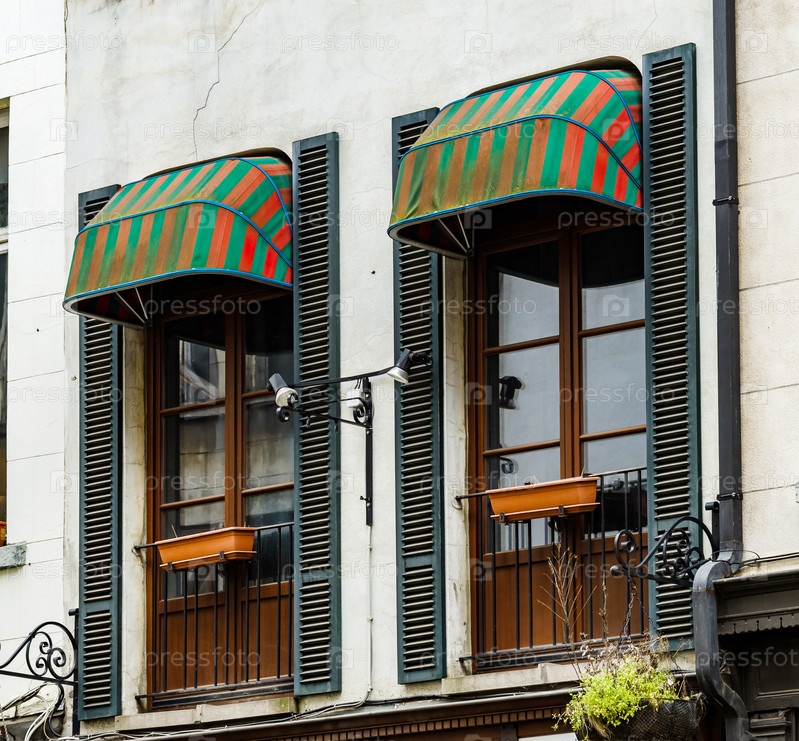 Старые, но отремонтированные окна в исторической части Брюсселя