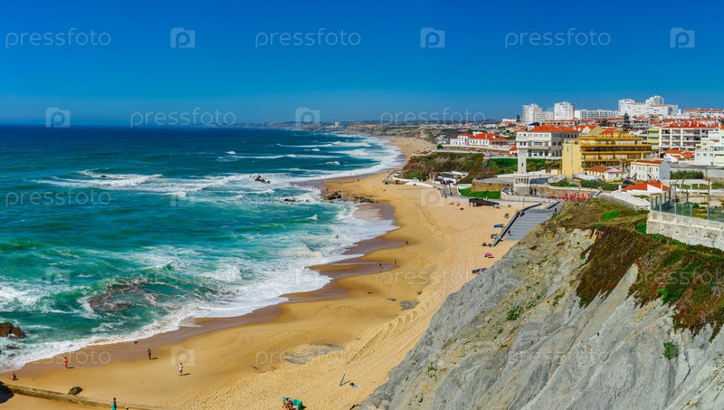 Желтые камни и песок на португальском побережье
