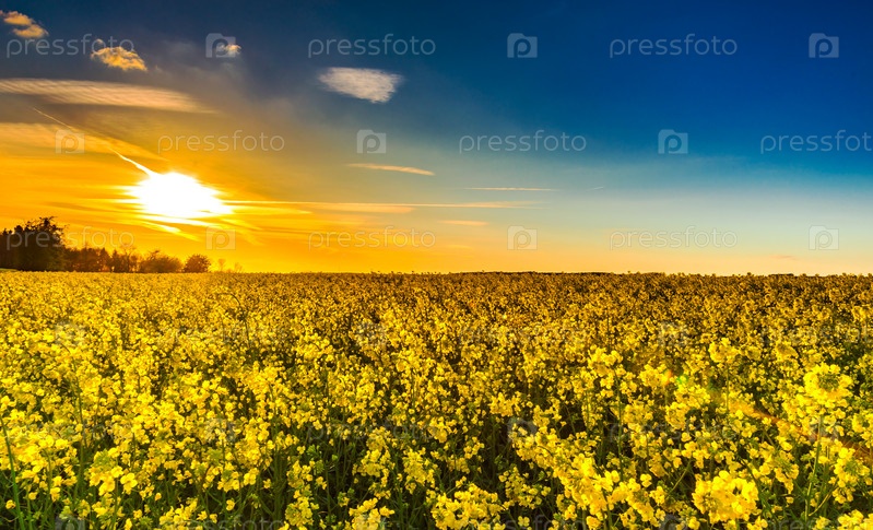 Величественный красочный закат над желтыми полями