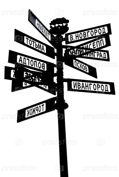 Указатель городов, изолированный на белом фоне