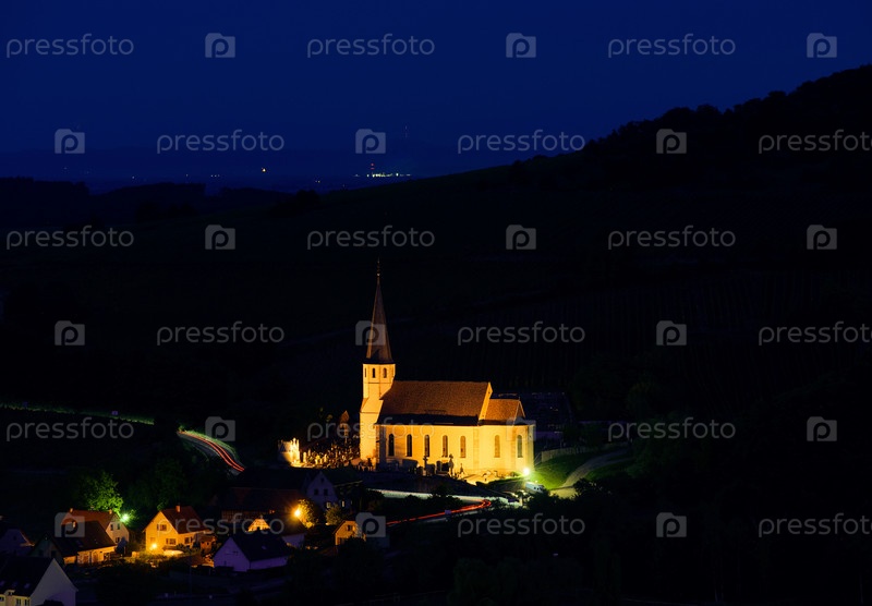Величественная старая церковь в небольшой французской деревушке Андлау