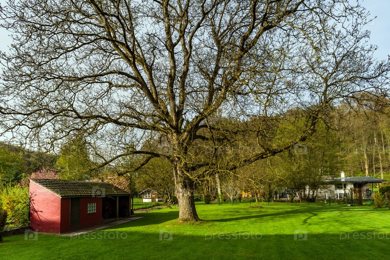 Зеленая трава в частном саду