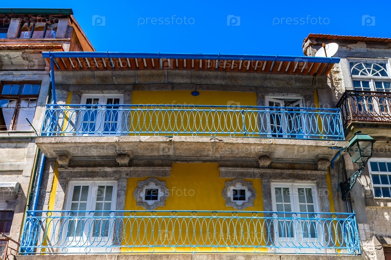 Красочные декорированные фасады традиционной улицы Португалии