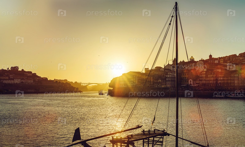 Прекрасный закат на реке в Порту, Португалия