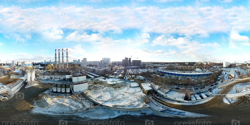 360-градусный панорамный вид с воздухом промышленной зоны под Москвой