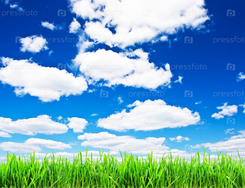 Траве под голубым облачным небом