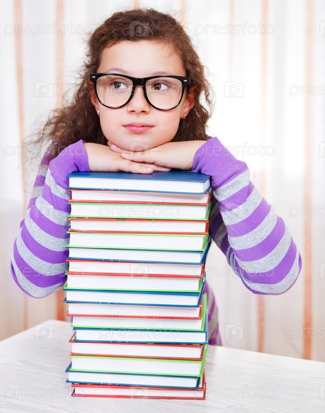 Маленькая девочка с кучей книг