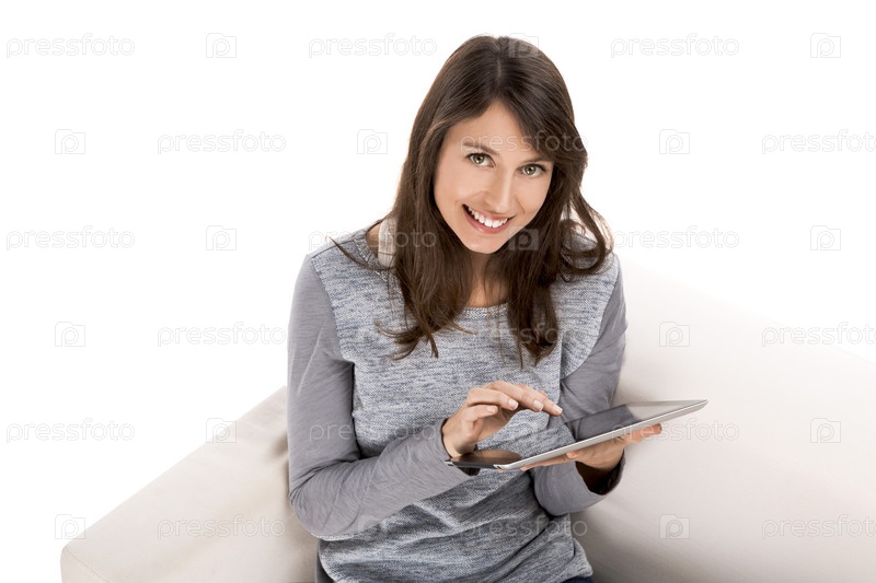 Женщина работает с планшетом