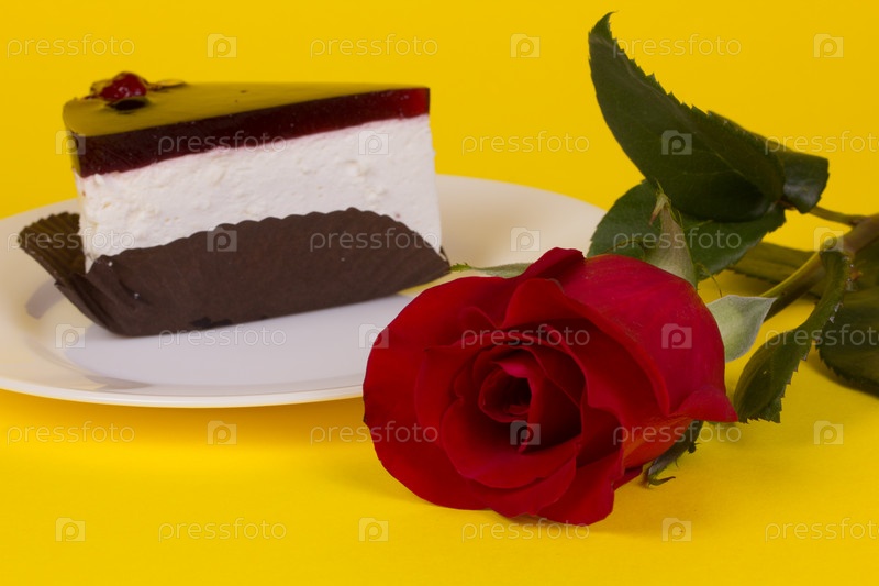 Кусок торта и роза