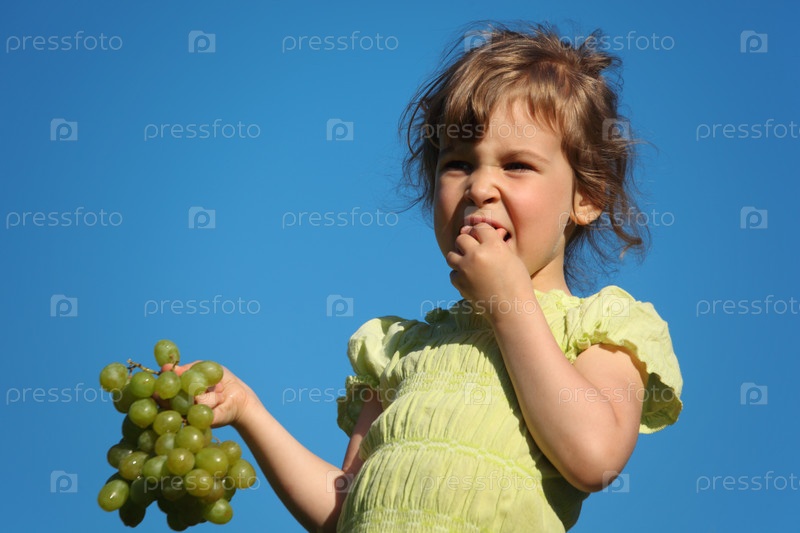 Девочка ест виноград