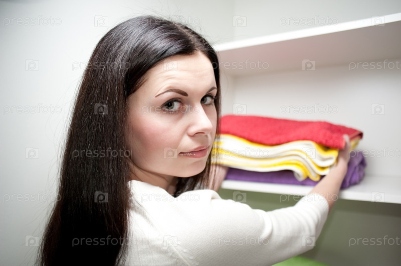 Девушка кладет полотенца