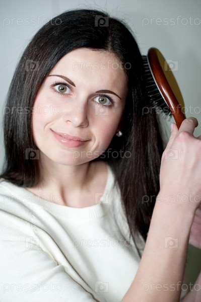 Красивая девушка расчесывает волосы