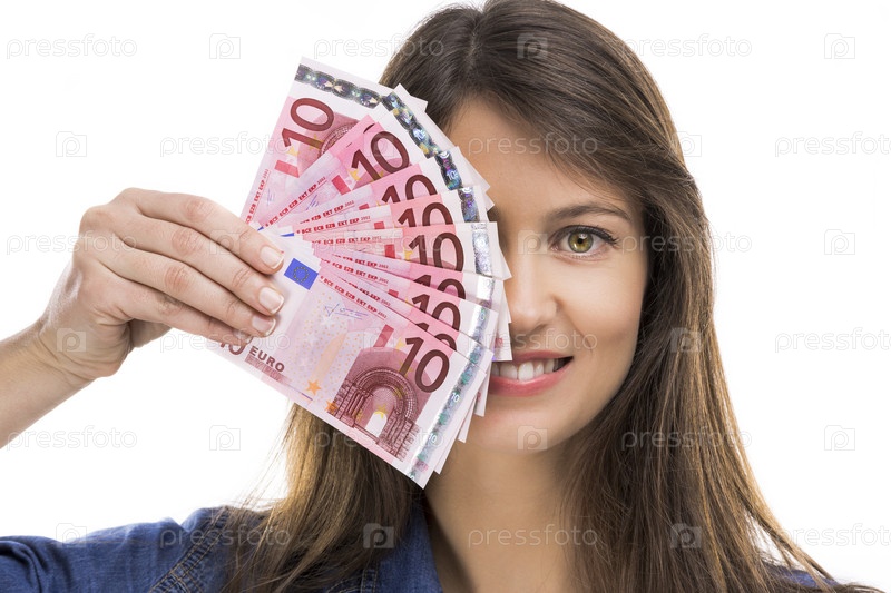 Женщина держит банкноты евро