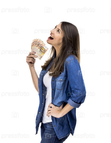 Женщина держит банкноты евро