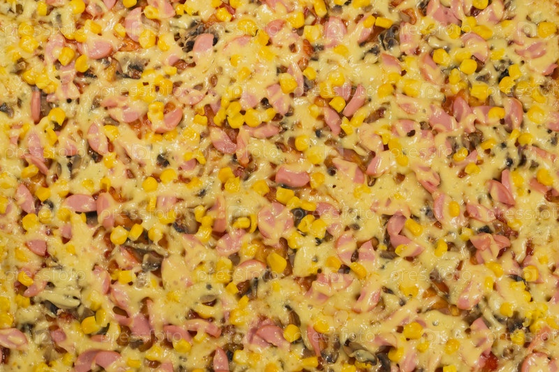 Большая пицца крупным планом, вид с сверху