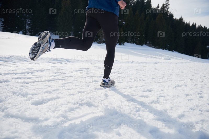Бег по снегу в лесу