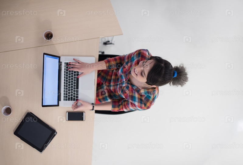Вид сверху молодой женщины с ноутбуком