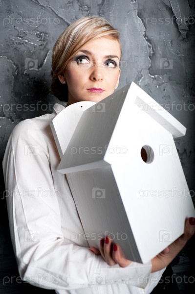 Привлекательная бизнес-леди с моделью дома