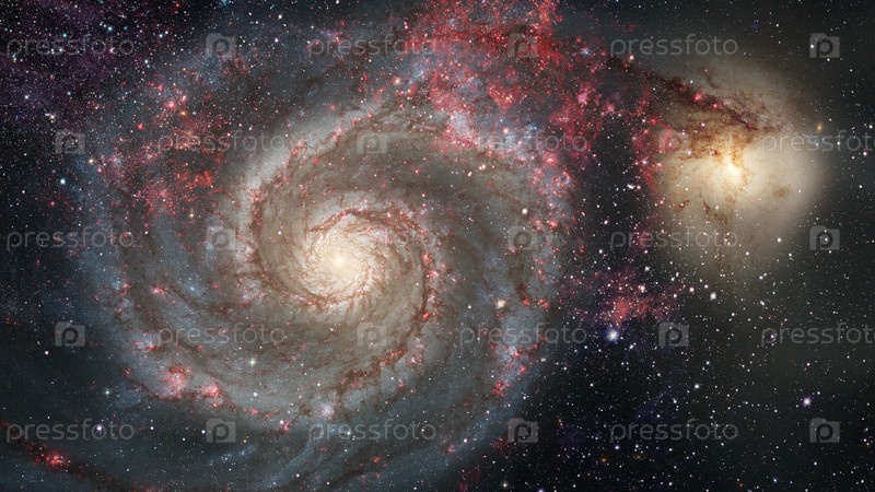 Туманность и галактики в темном пространстве