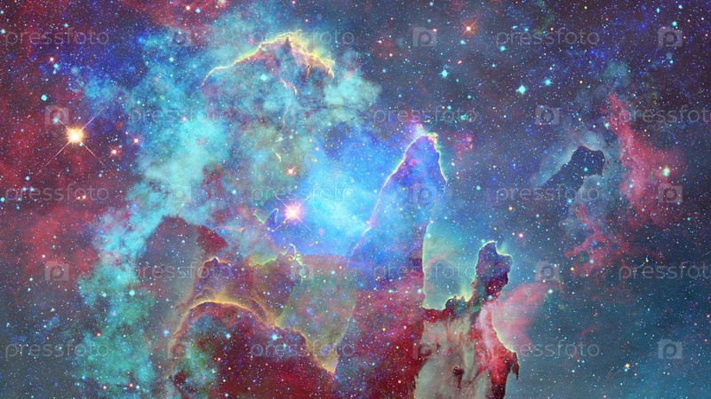 Цветная туманность и скопление звезд во Вселенной