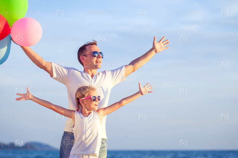Отец и дочь, играя на пляже