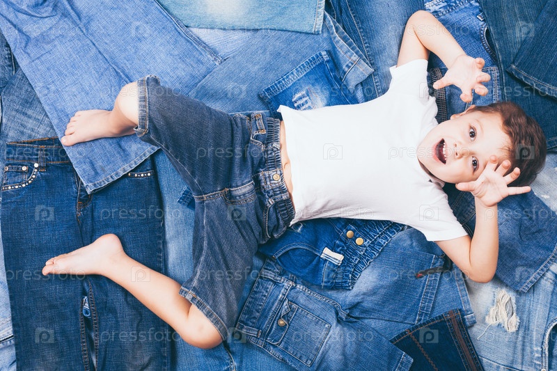 Симпатичный маленький мальчик лежит на джинсах