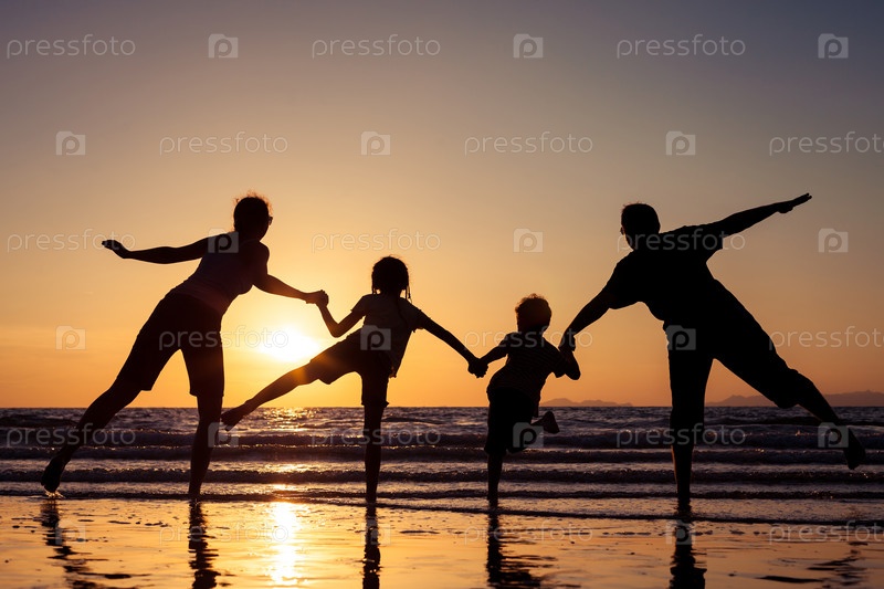 Силуэт счастливой семьи во время заката