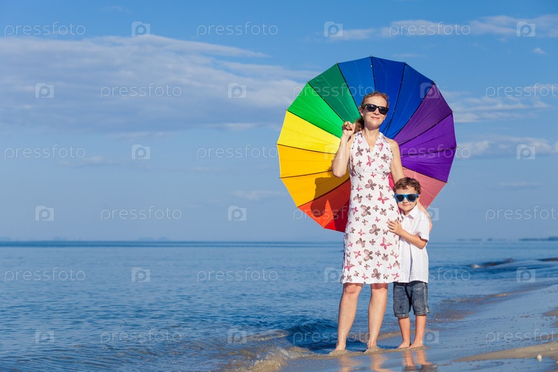 Мать и сын на пляже