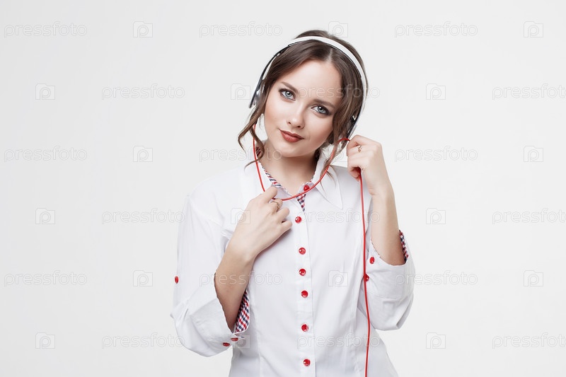 Счастливая девушка слушает музыку в наушниках