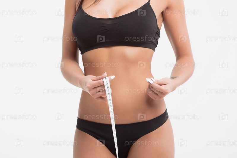 Молодая красивая девушка измеряет тело