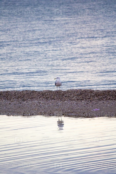 Красивый морской пейзаж. Чайки на море
