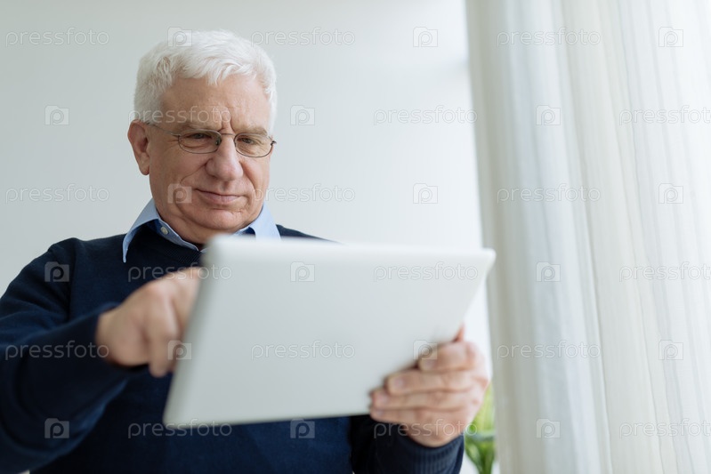 Пожилой мужчина с цифровым планшетом