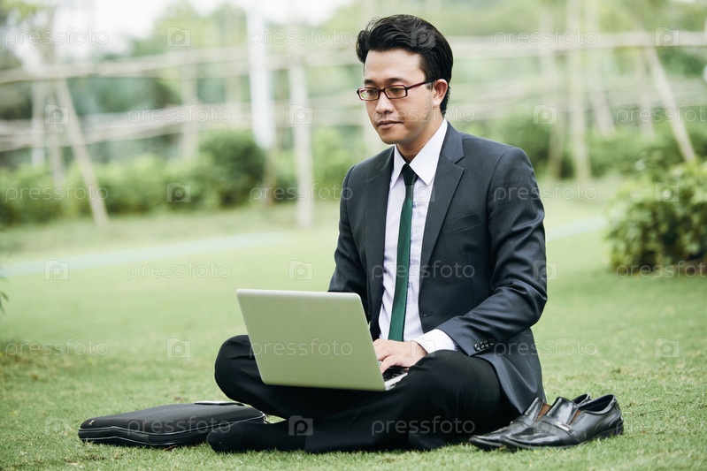 Бизнесмен, работающий в парке