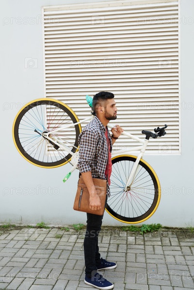 Красивый молодой человек с велосипедом