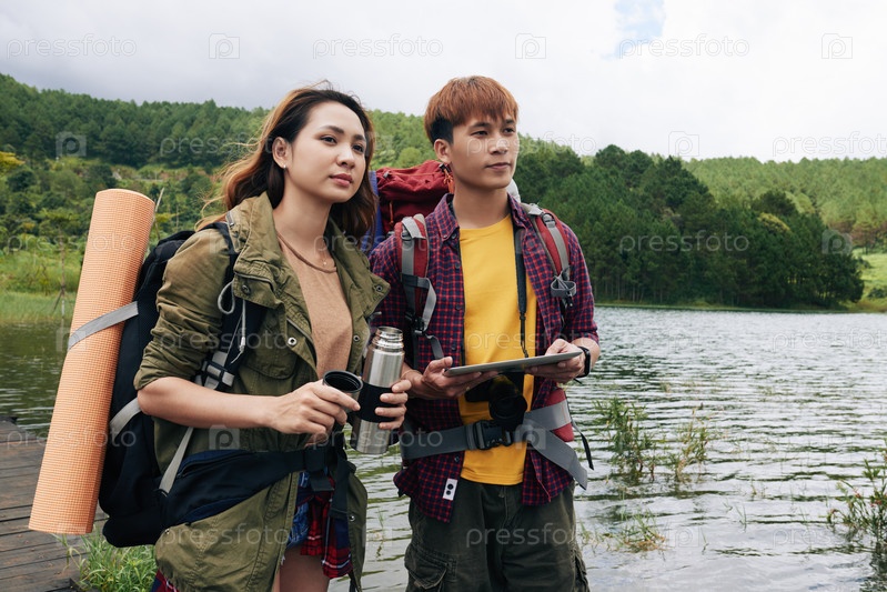 Азиатская пара наслаждаясь походом