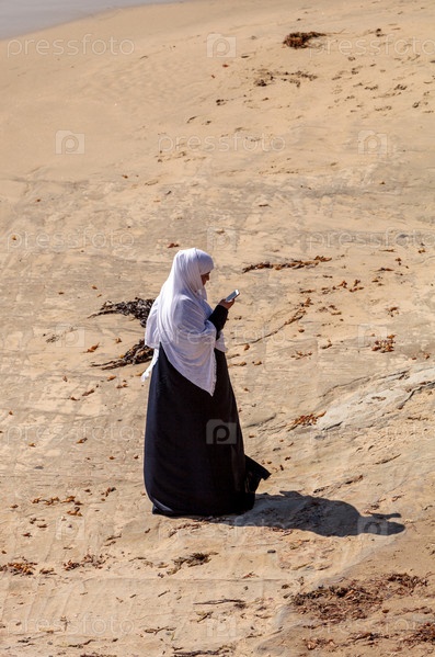 Женщина в хиджабе и чадре на пляже