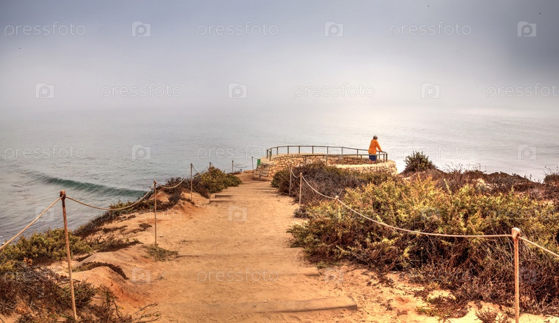 Одинокий человек стоит на мысу Кристал Ков