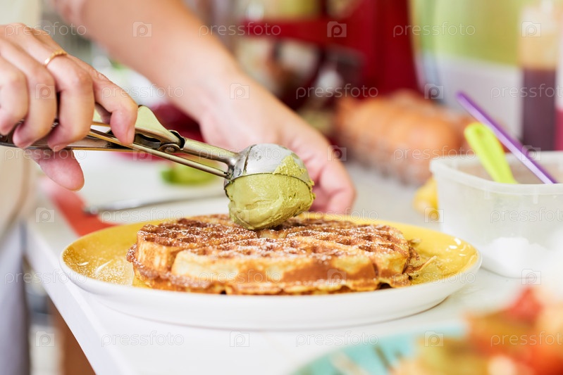 Сладкие вафли и мороженое