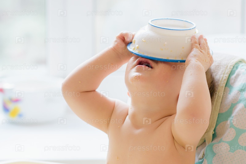 Ребенок надел миску на голове