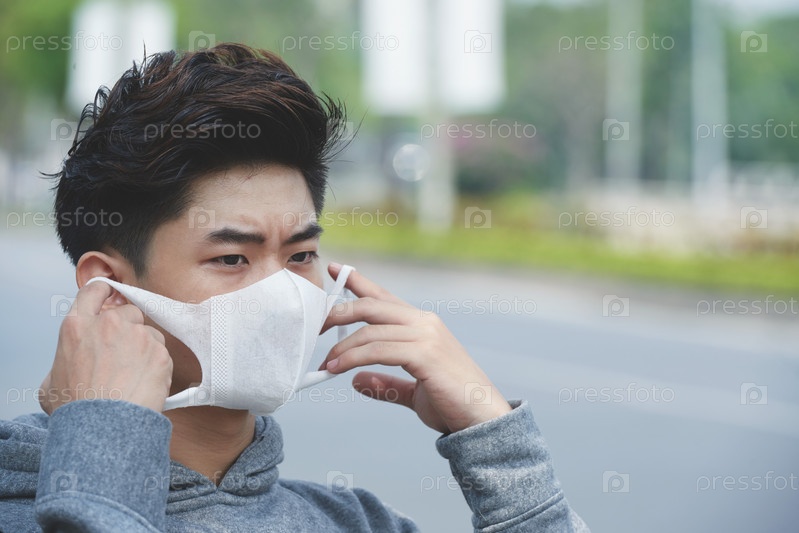Больной человек носит маску