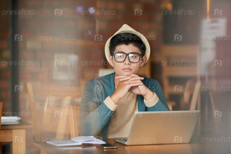 Задумчивый человек в кафе