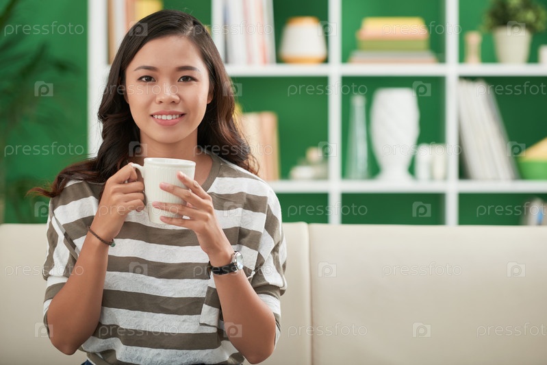 Красивая девушка пьет кофе