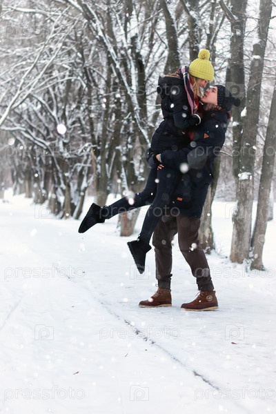 Пара на улице зимой